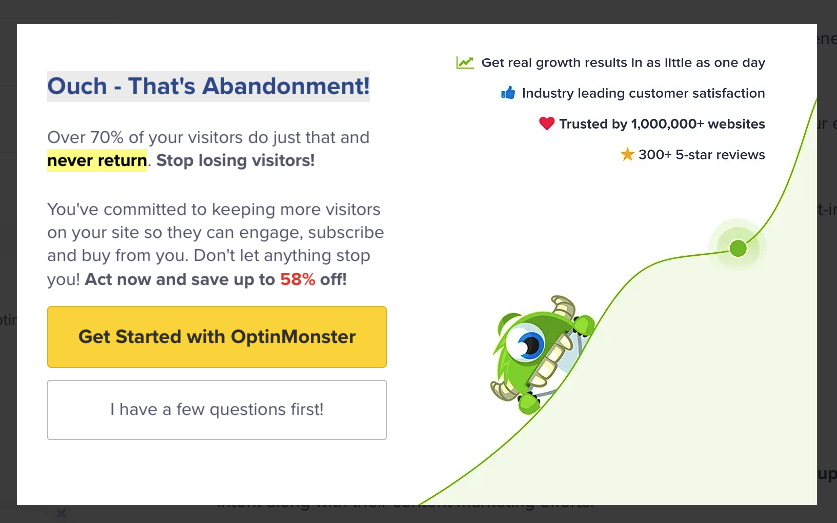 - There is no exit-intent trigger, which could be a deal breaker for plenty of users