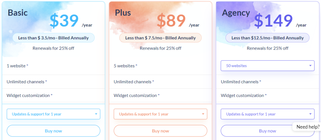 The Basic paid plan includes only one website where you can implement your chat widget. You would have to upgrade to some of the bigger paid plans if you run more than one website.