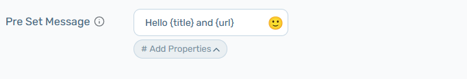 Jak již bylo zmíněno, do přednastavené zprávy můžete přidat také název a značku URL. Značka {title} získává název stránky, přes kterou byla zpráva odeslána, a značka {url} adresu URL stránky. Pokud je tedy například vaše přednastavená zpráva „Ahoj!“ a přidáte značky title i URL: