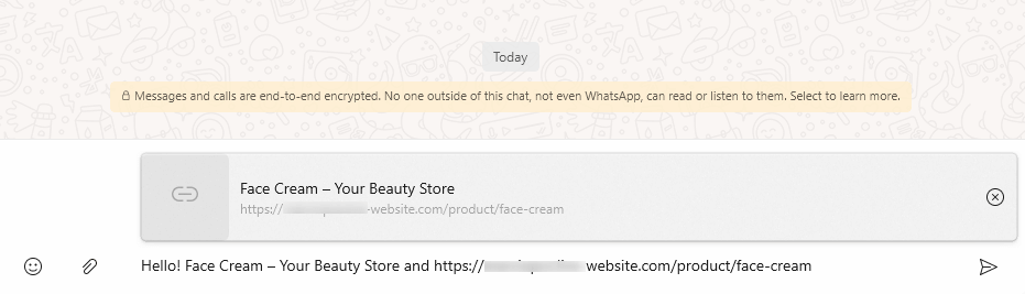 Můžete si nastavit přednastavenou zprávu pro WhatsApp, která se automaticky zobrazí v okně zpráv WhatsApp, když návštěvníci vašeho webu zahájí chat. Může to být něco jako „Ahoj, mám otázku“ nebo cokoli jiného, o čem si myslíte, že může vyzvat zákazníka k zahájení konverzace nebo k urychlení chatu. Můžete také použít slučovací značky k přidání adresy URL nebo názvu stránky, na které návštěvník webu zahájil chat. Do zprávy můžete například přidat adresu URL produktu, abyste věděli, na který produkt váš zákazník odkazuje, když vám posílá zprávu.