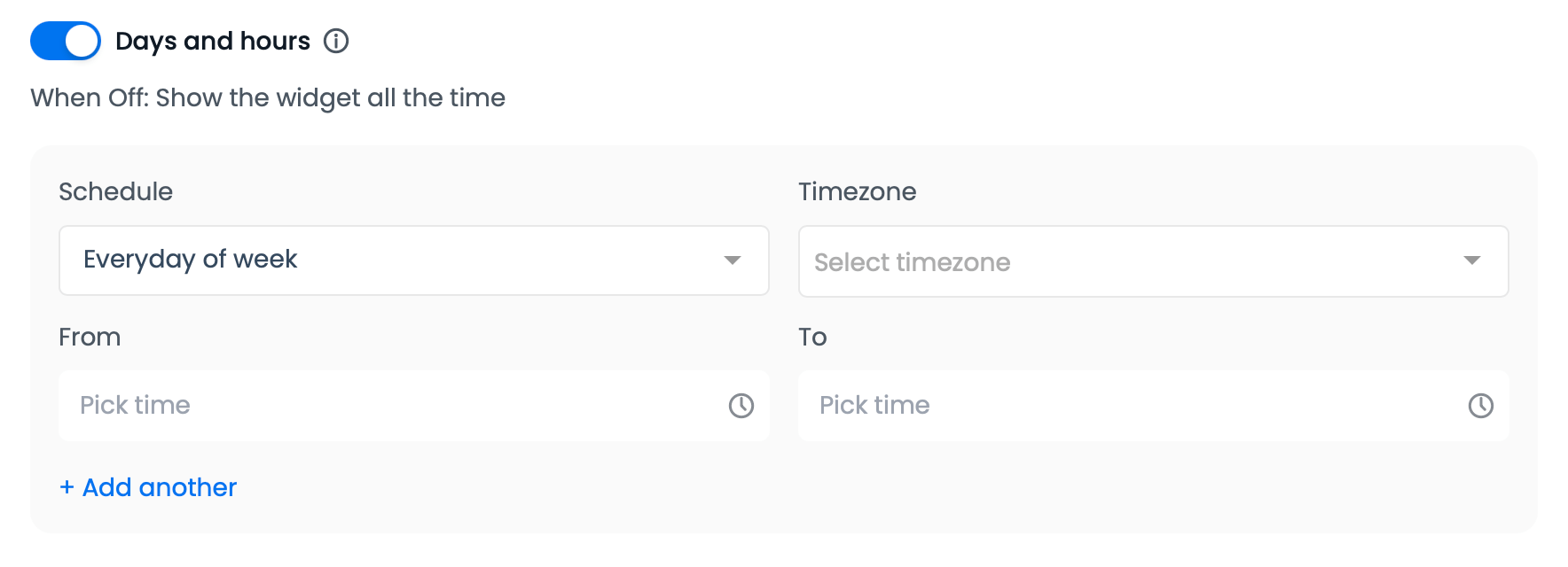 Nyní vyberte, aby se widget zobrazoval v konkrétních dnech a hodinách na základě vašich otevíracích dnů a hodin.