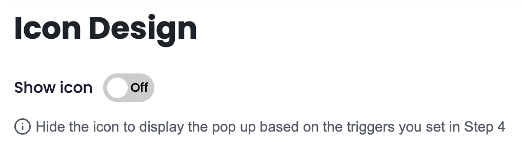 But first – why hide your icon? You can choose to hide the icon so that your page looks less “cluttered”. Please note however if there is no icon, visitors who close the pop up won’t be able to reopen it using the widget.