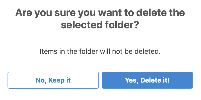 At this step you will be asked to confirm your choice. Please note items in the folder will NOT be deleted – only the folder itself will be.