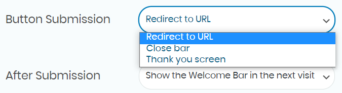 Then, you need to choose what to show after visitors click on the button. You can have the bar close, write a message of your choice or redirect the visitors to another URL.