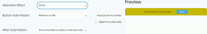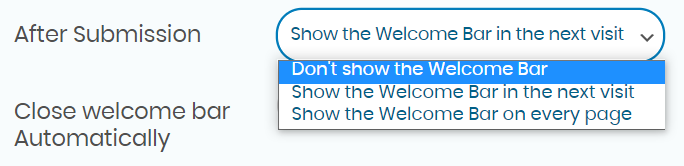 You then need to choose your welcome bar behaviour after submission. You can choose not to show it anymore, to show it on every page or to show it on the next visit.
